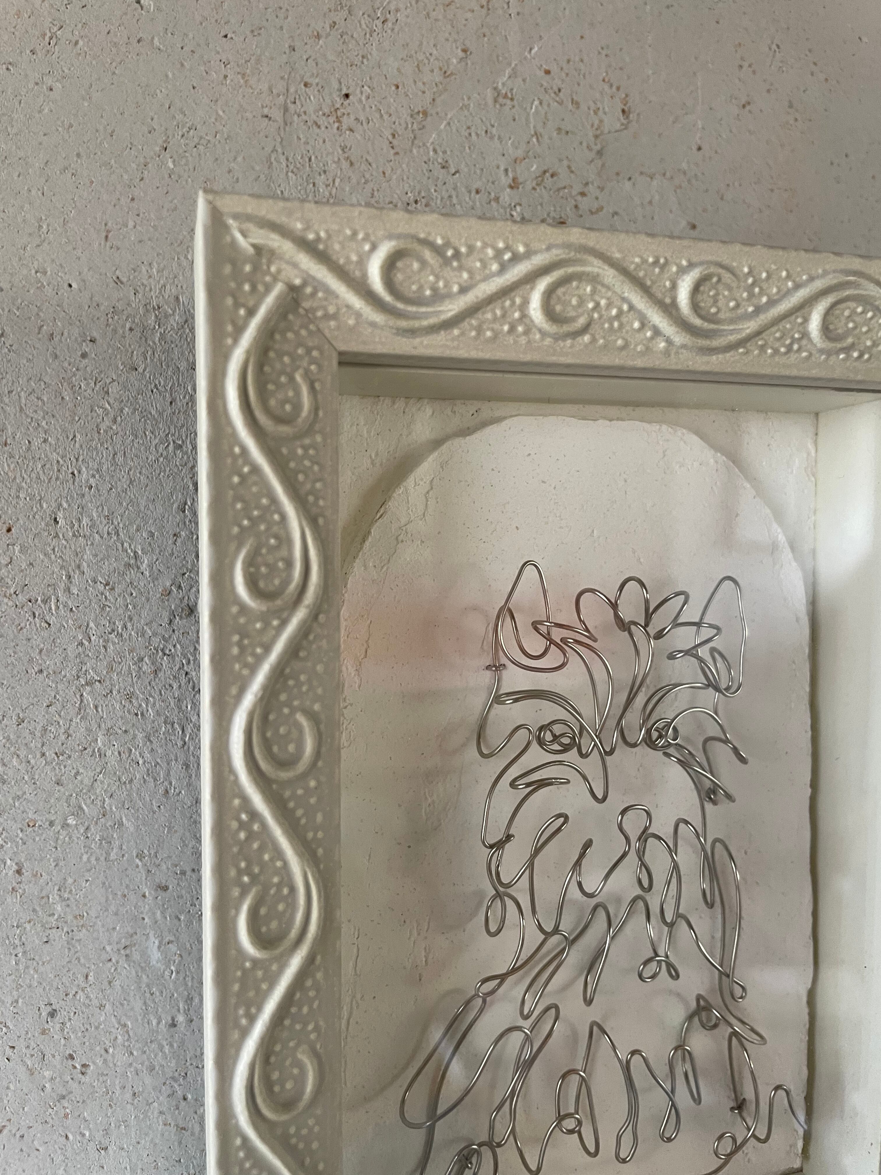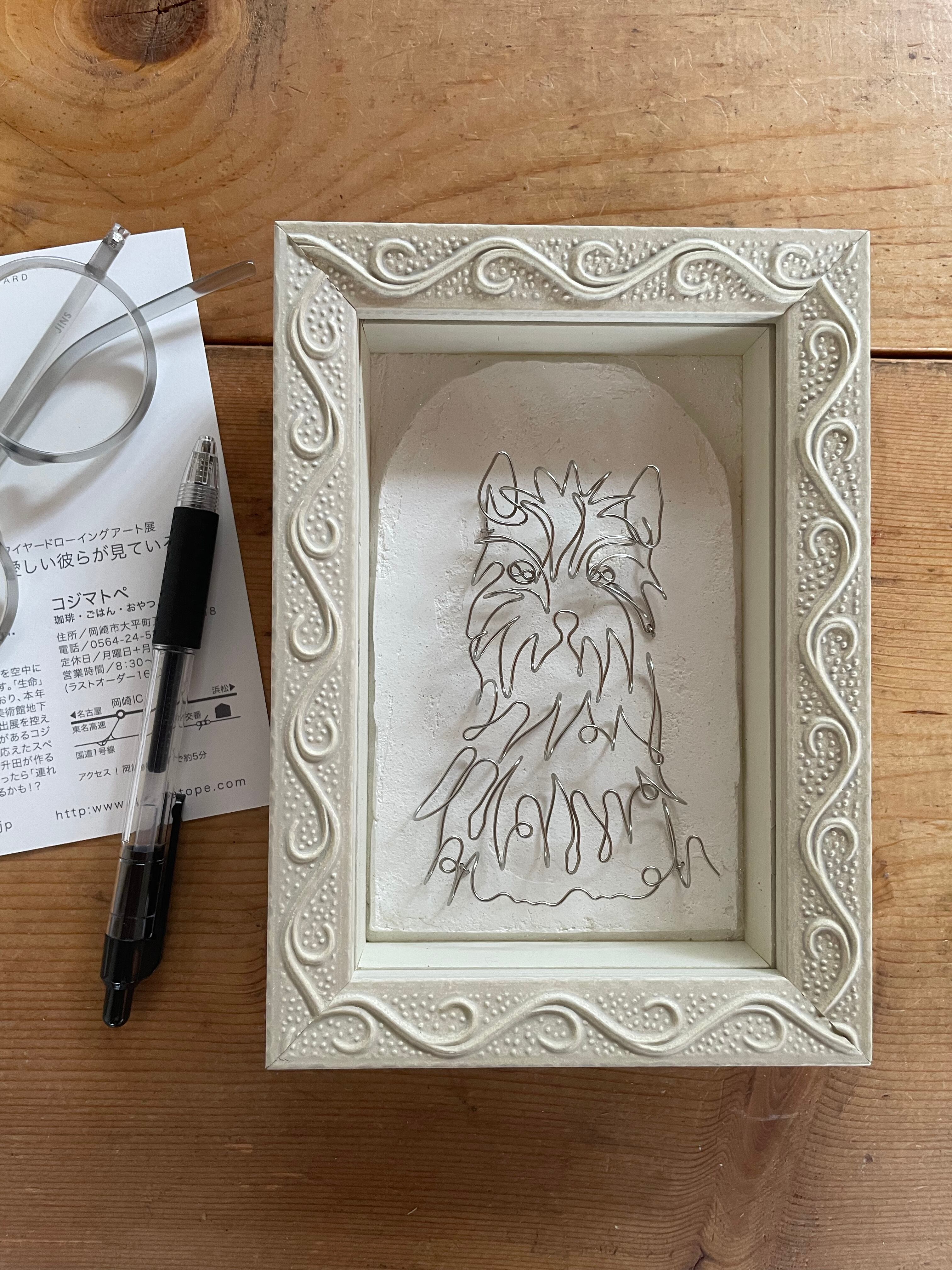 1本の針金を一筆書きの要領で描くワイヤードローイング作品で、「線」である二次元の作品が多次元に展開していくワイヤーアートです。