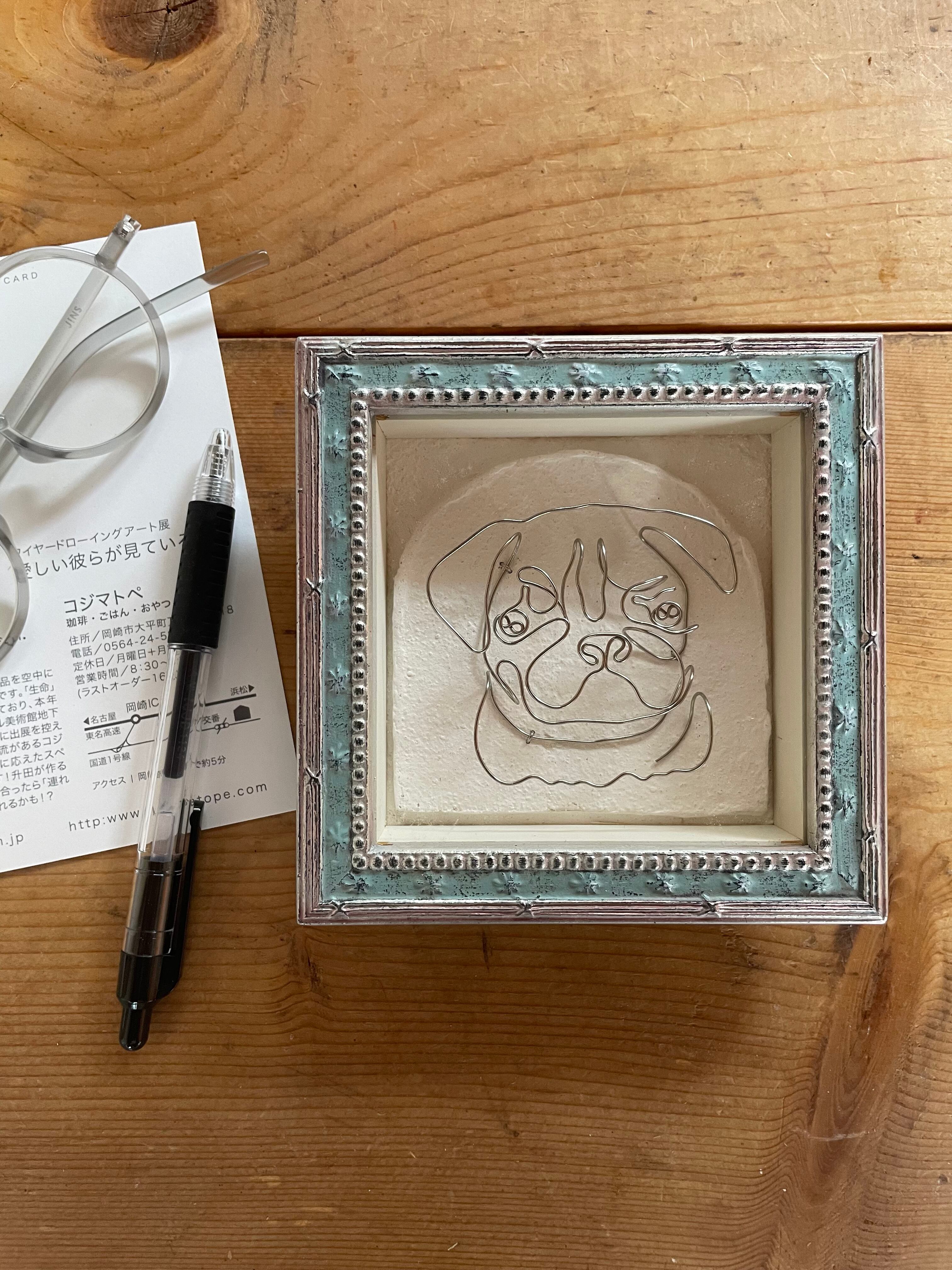 1本の針金を一筆書きの要領で描くワイヤードローイング作品で、「線」である二次元の作品が多次元に展開していくワイヤーアートです。