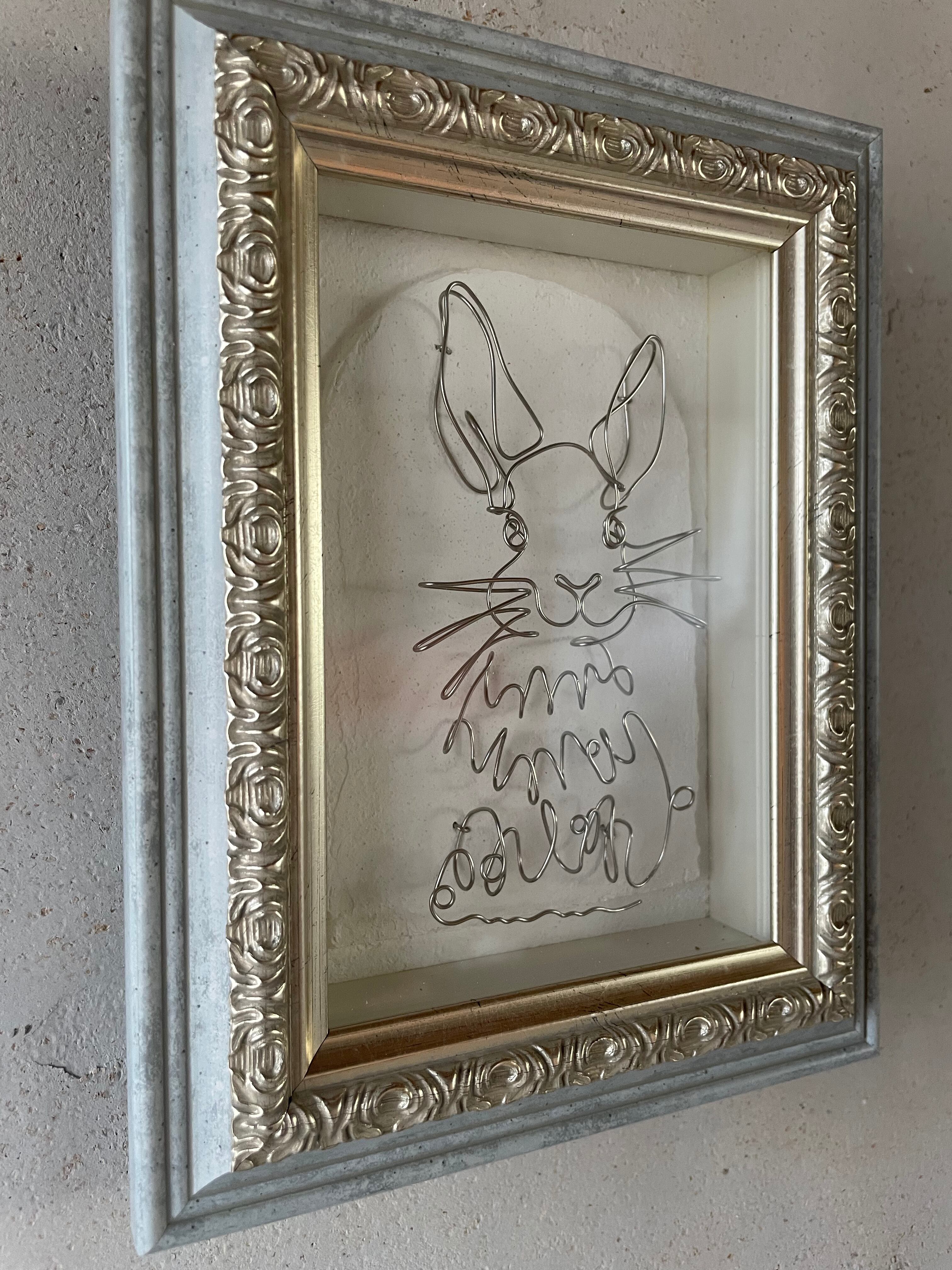 1本の針金を一筆書きの要領で描くワイヤードローイング作品で、「線」である二次元の作品が多次元に展開していくワイヤーアートです。