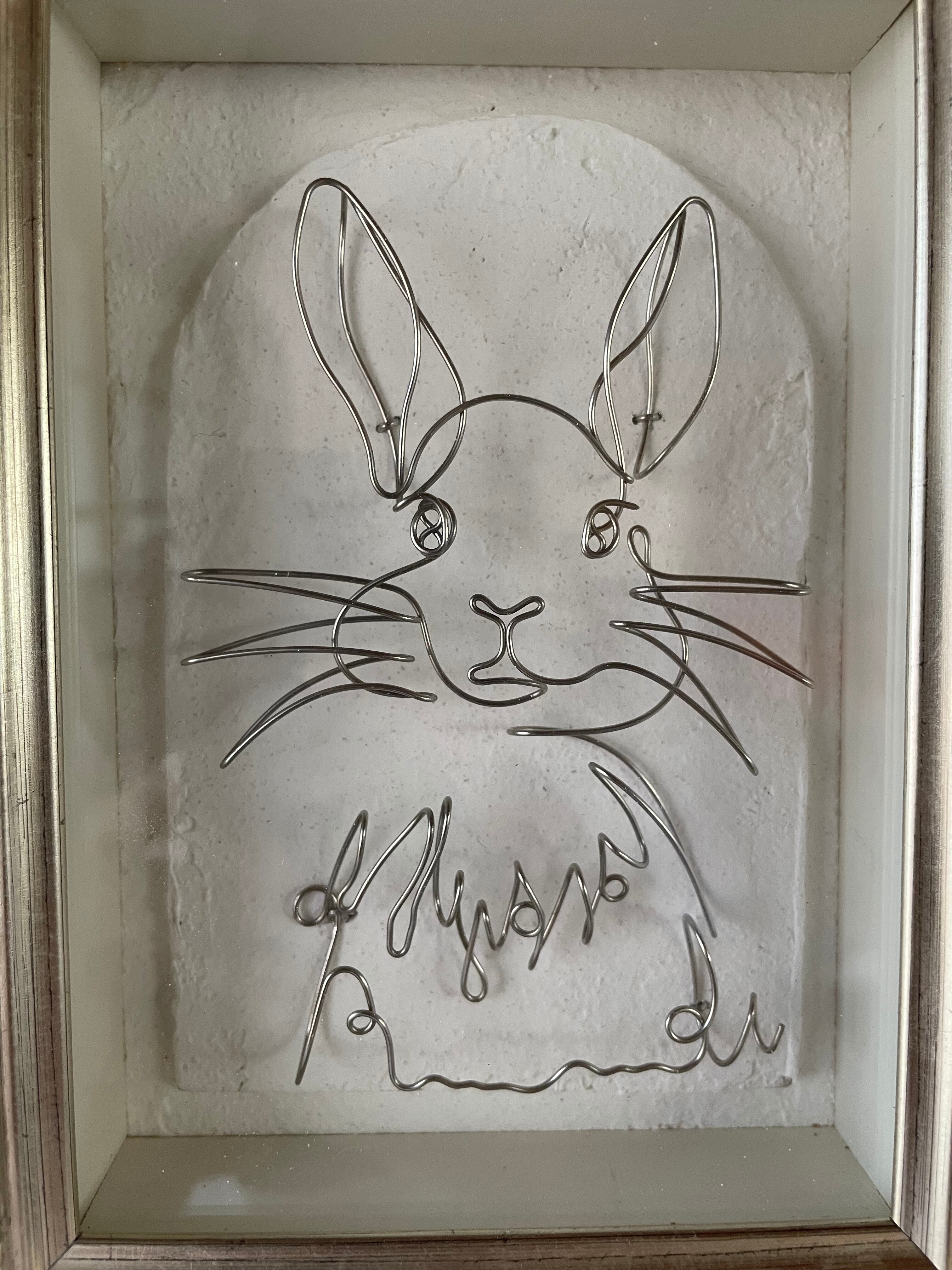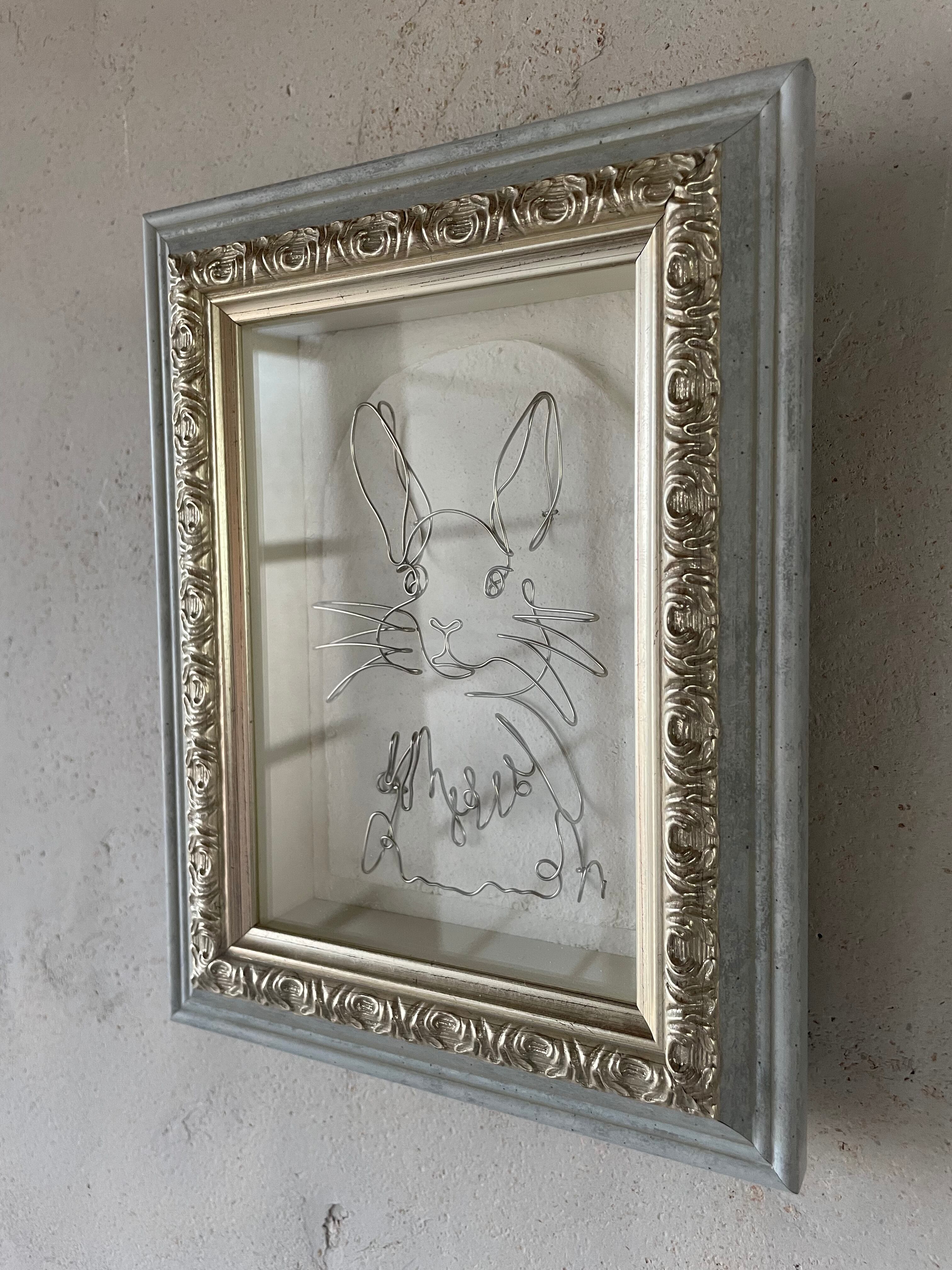 1本の針金を一筆書きの要領で描くワイヤードローイング作品で、「線」である二次元の作品が多次元に展開していくワイヤーアートです。
