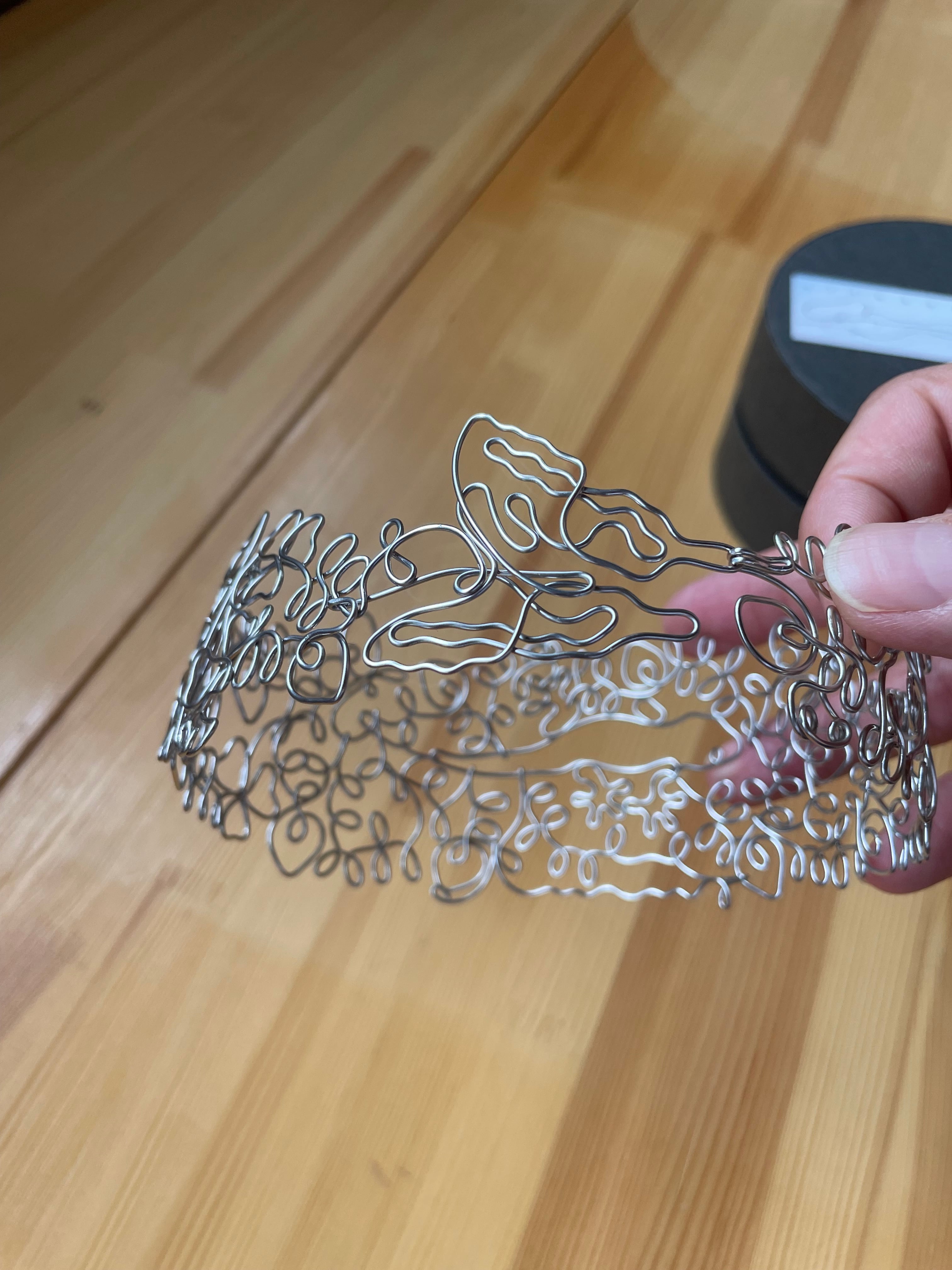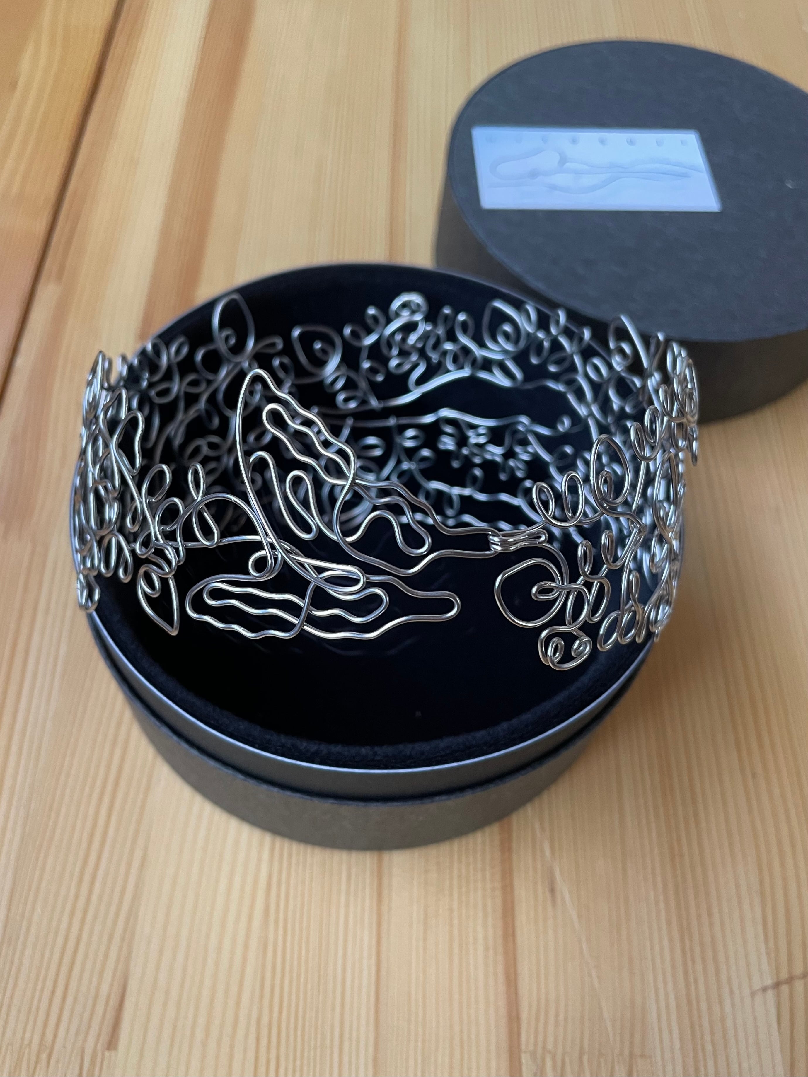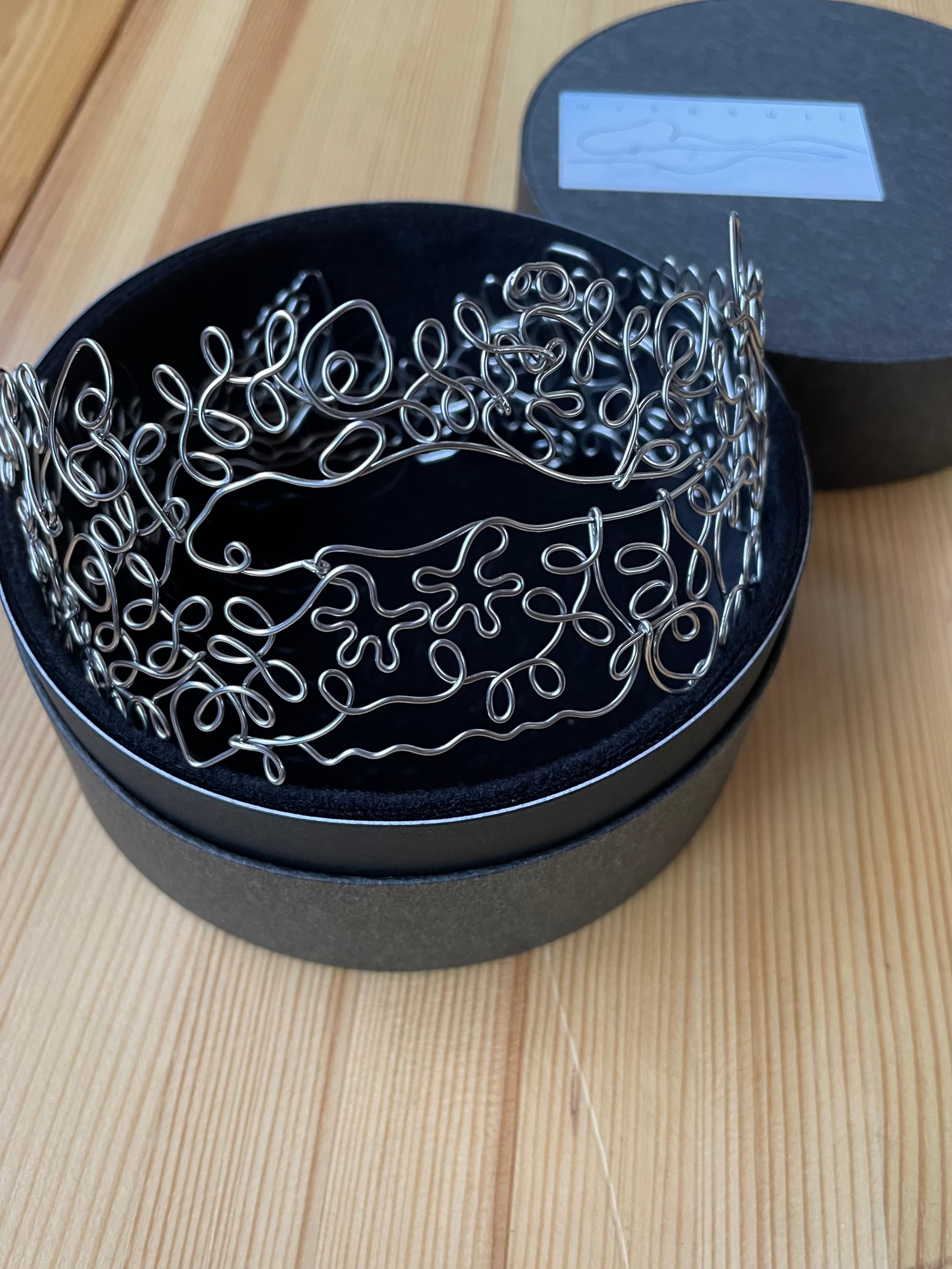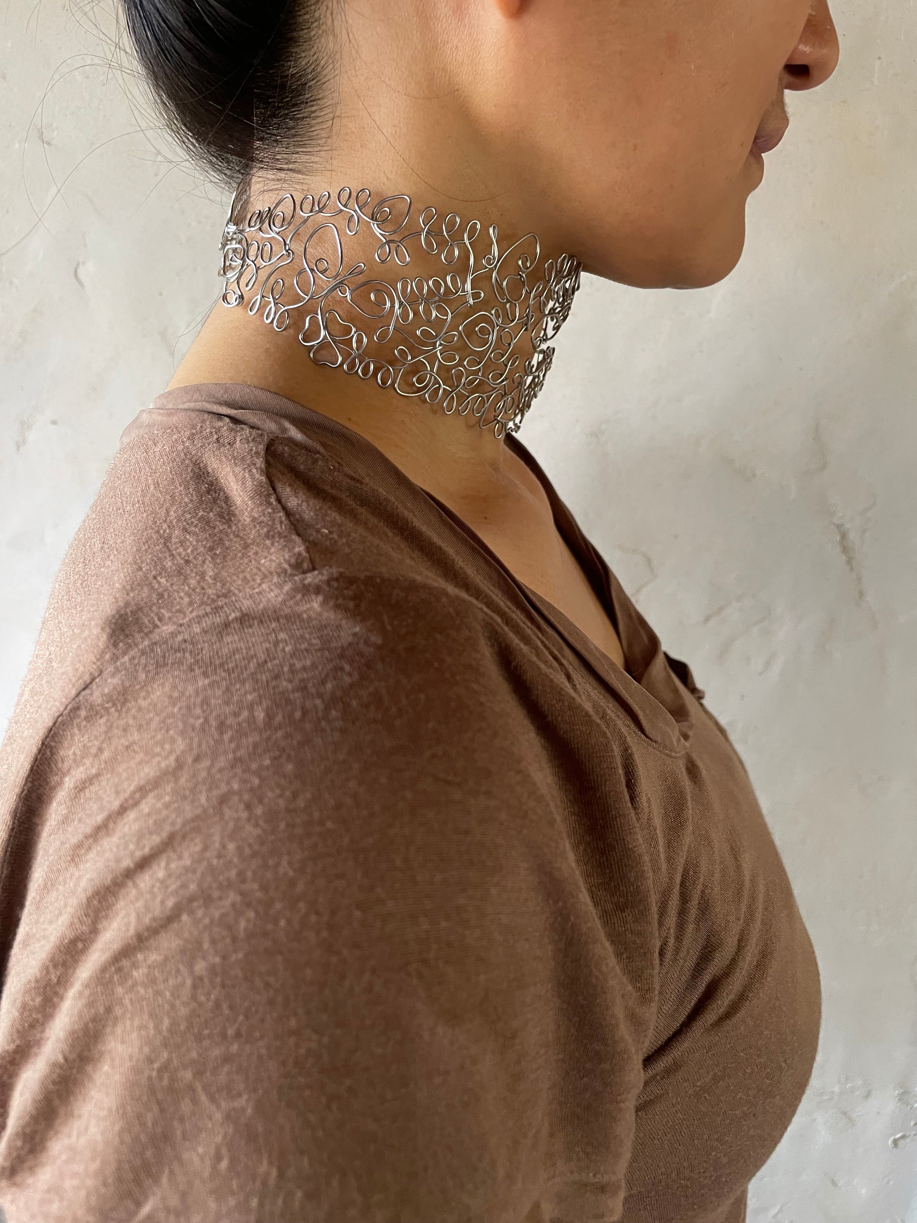 これまでのモノとは一味も二味も違う、主張の強いチョーカーです。ヤモリを中心に森の様子を緻密に描かれています。アートを見に纏う作品と言えます。きっと目に留まって、注目の的になるでしょう。